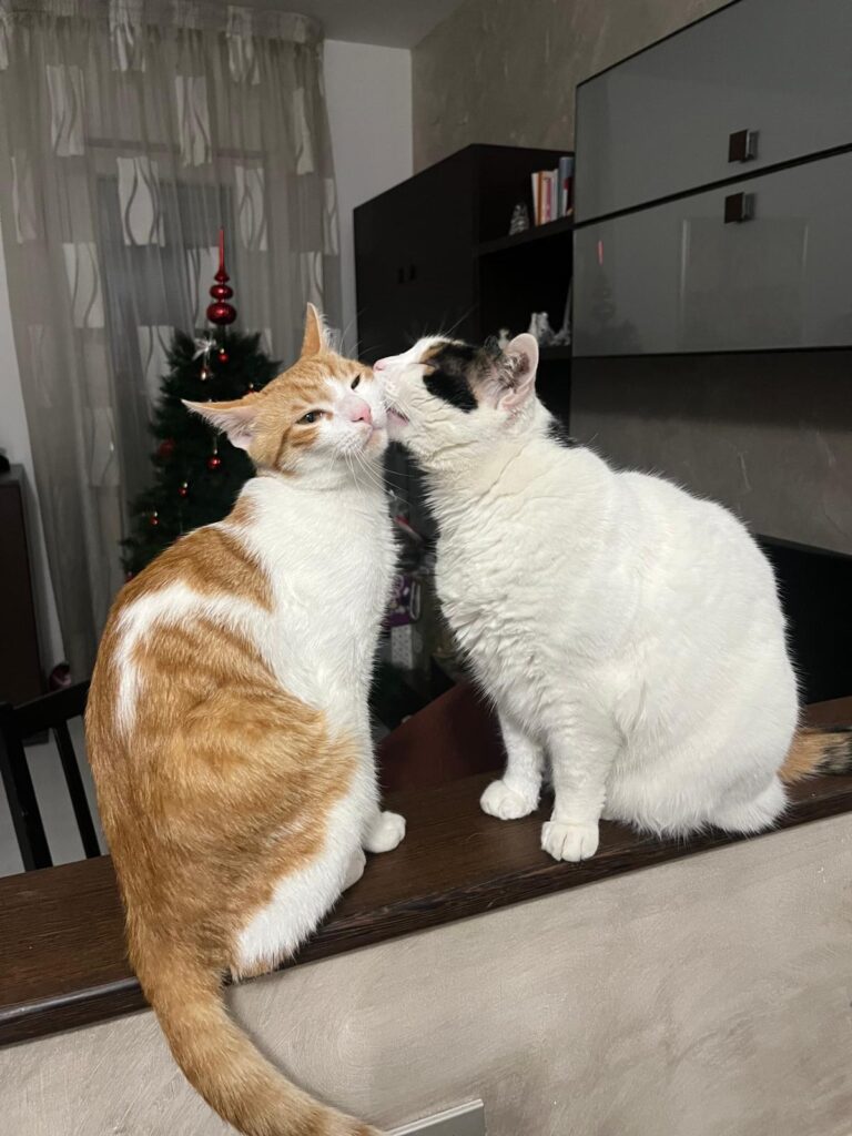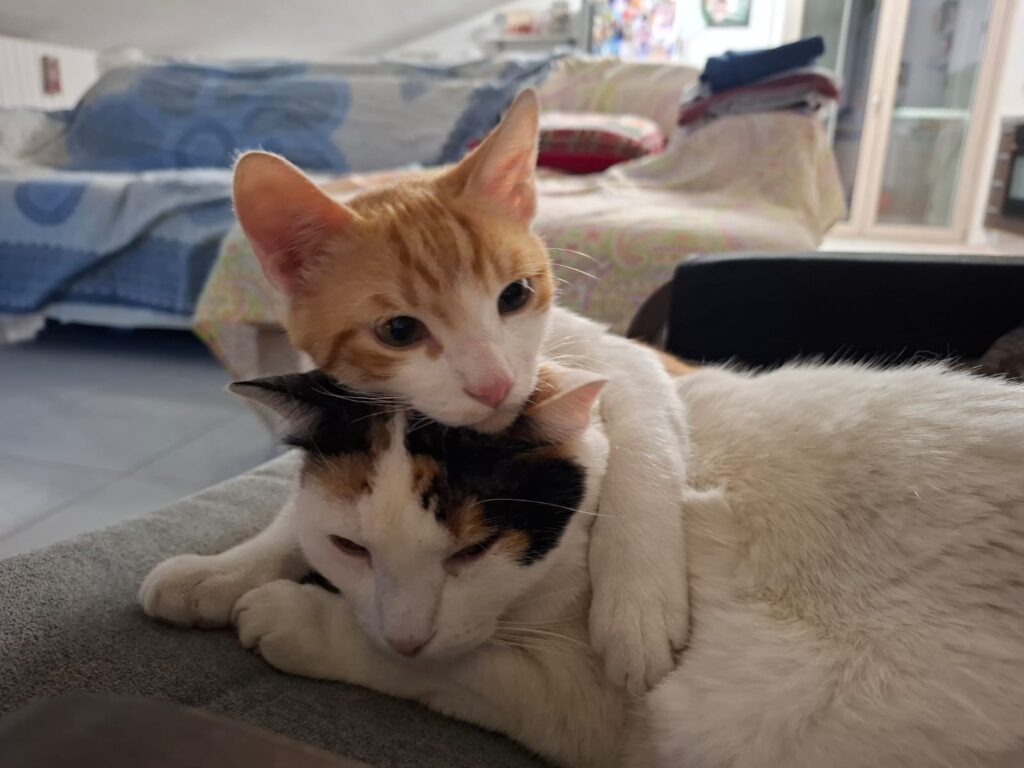 Decidemmo di chiamarlo Brillo, un nome che racchiudeva perfettamente la sua essenza: sia per la lucentezza dei suoi colori, un bianco e un arancione che brillavano, sia per la sua travolgente allegria che già si percepiva. In casa c’era già un’altra presenza felina, la nostra Milly, una gatta che, qualche anno prima, aveva vissuto la sua unica cucciolata. Incredibilmente, dopo un iniziale periodo di cauta distanza, Milly divenne la nuova mamma di Brillo. Se ne prese cura con una dedizione commovente, e Brillo trovò in lei il conforto e la protezione che tanto gli erano mancati. Era una gioia immensa vederli dormire insieme, Milly che accudiva quel piccolo essere con una tenerezza infinita.